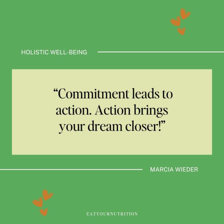 "Commitment leads to action. Action brings your dream closer." This powerful statement by Marcia Wieder holds profound truth, especially when it comes to your health and well-being. Every step you take and every choice you make is a testament to your commitment to your holistic well-being. It's these consistent, small commitments that create the foundation for your healthiest and happiest self. Follow these key components for general well-being, and watch your entire life change.