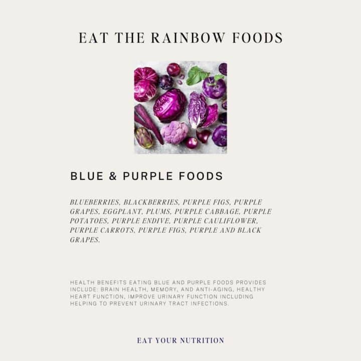 Check out the Eat the Rainbow chart at the end of this article to learn more health benefits that purple and blue foods provide for the body.