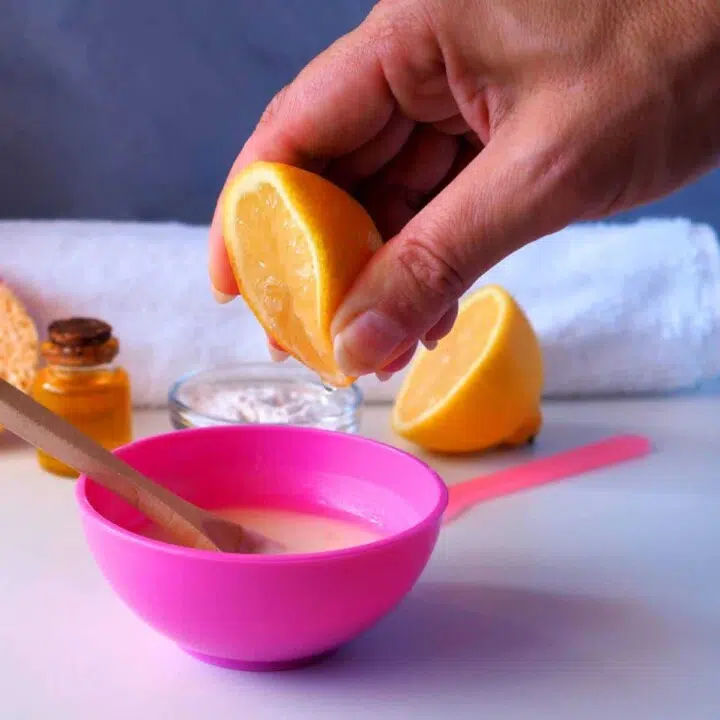 For less potent solutions, mix the lemon juice with some water. You can also make a mask with honey, turmeric, milk, specialized oils, or other ingredients. Leave the mask on for 15 to 30 minutes, then rinse it off.