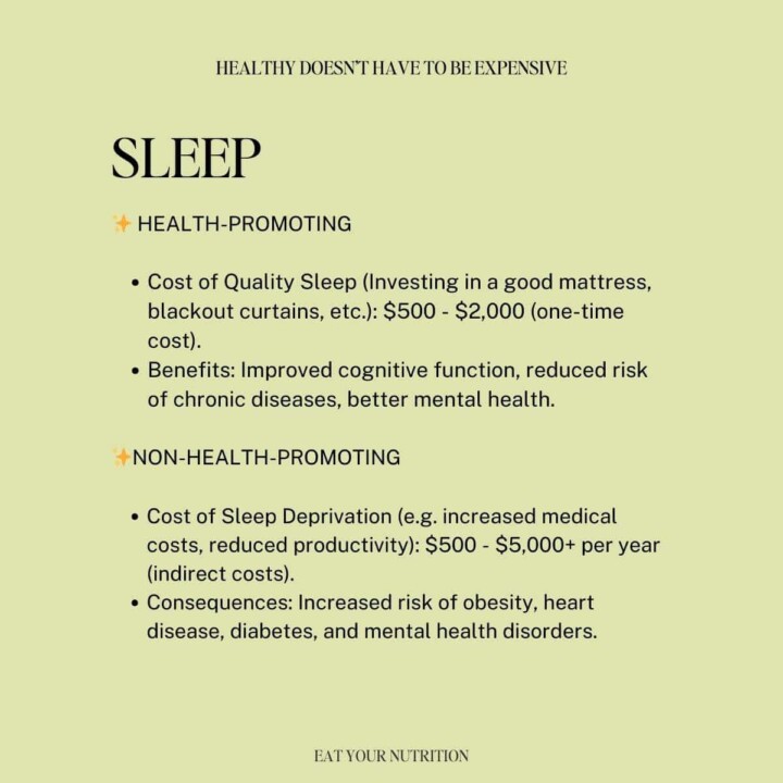 - Health-Promoting Costs: Investing in a good mattress, blackout curtains, or white noise machines can improve sleep quality.