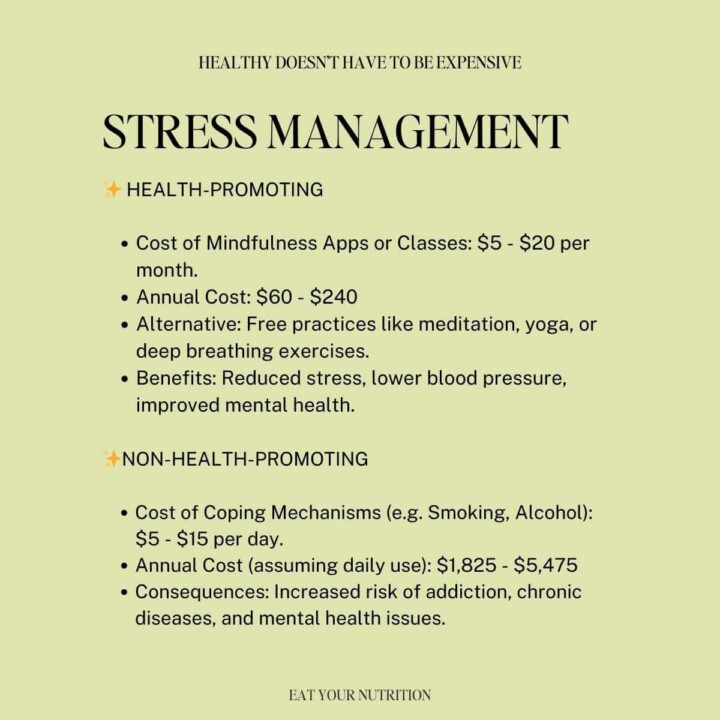 - Stress management and quality sleep are essential aspects of a healthy lifestyle that don't require a lot of money.