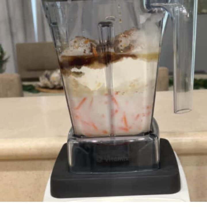 - In a blender, combine carrots, milk, eggs, coconut oil, maple syrup, and vanilla extract.